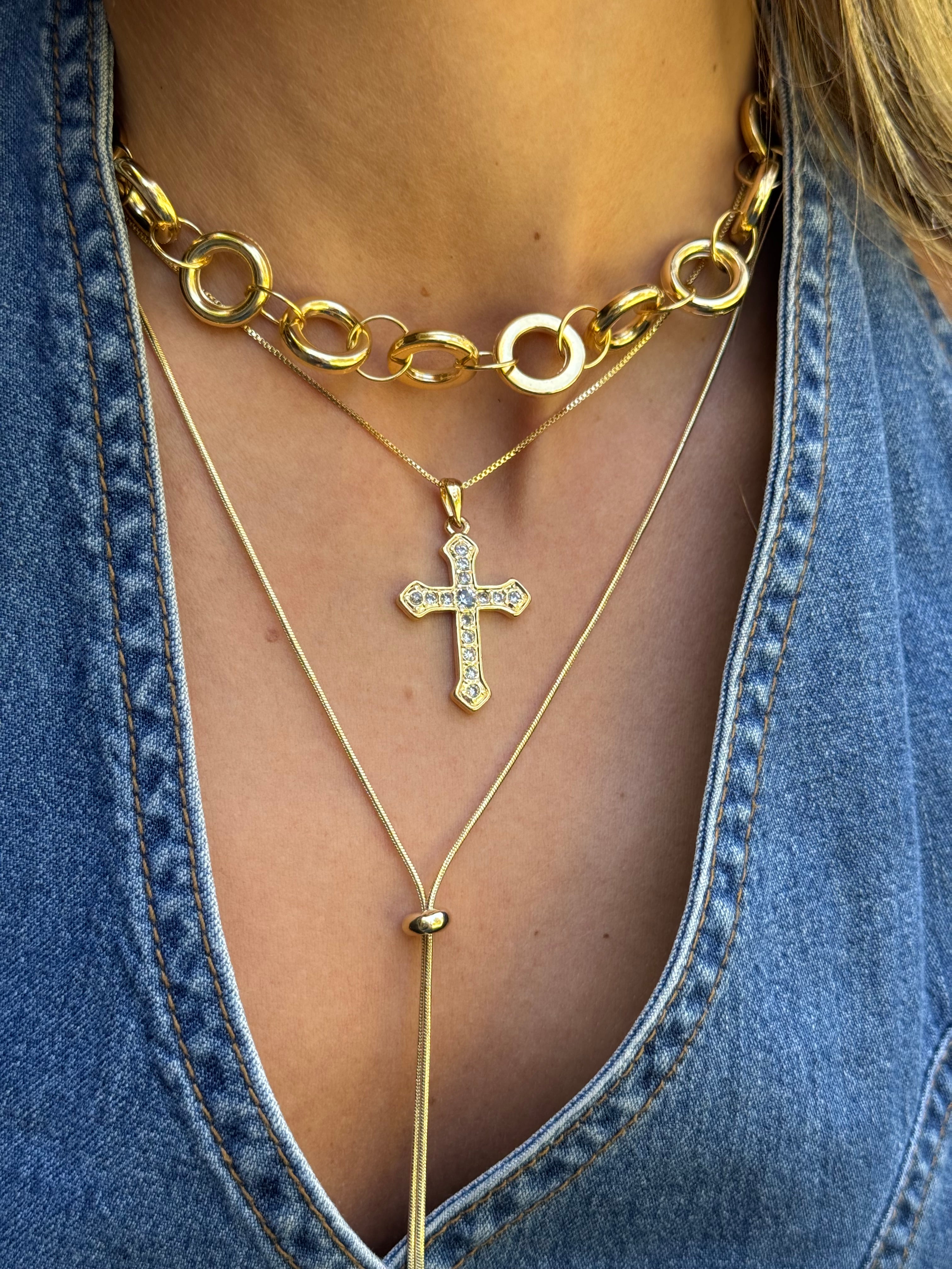 Collar Cruz Medalla Calada Oro