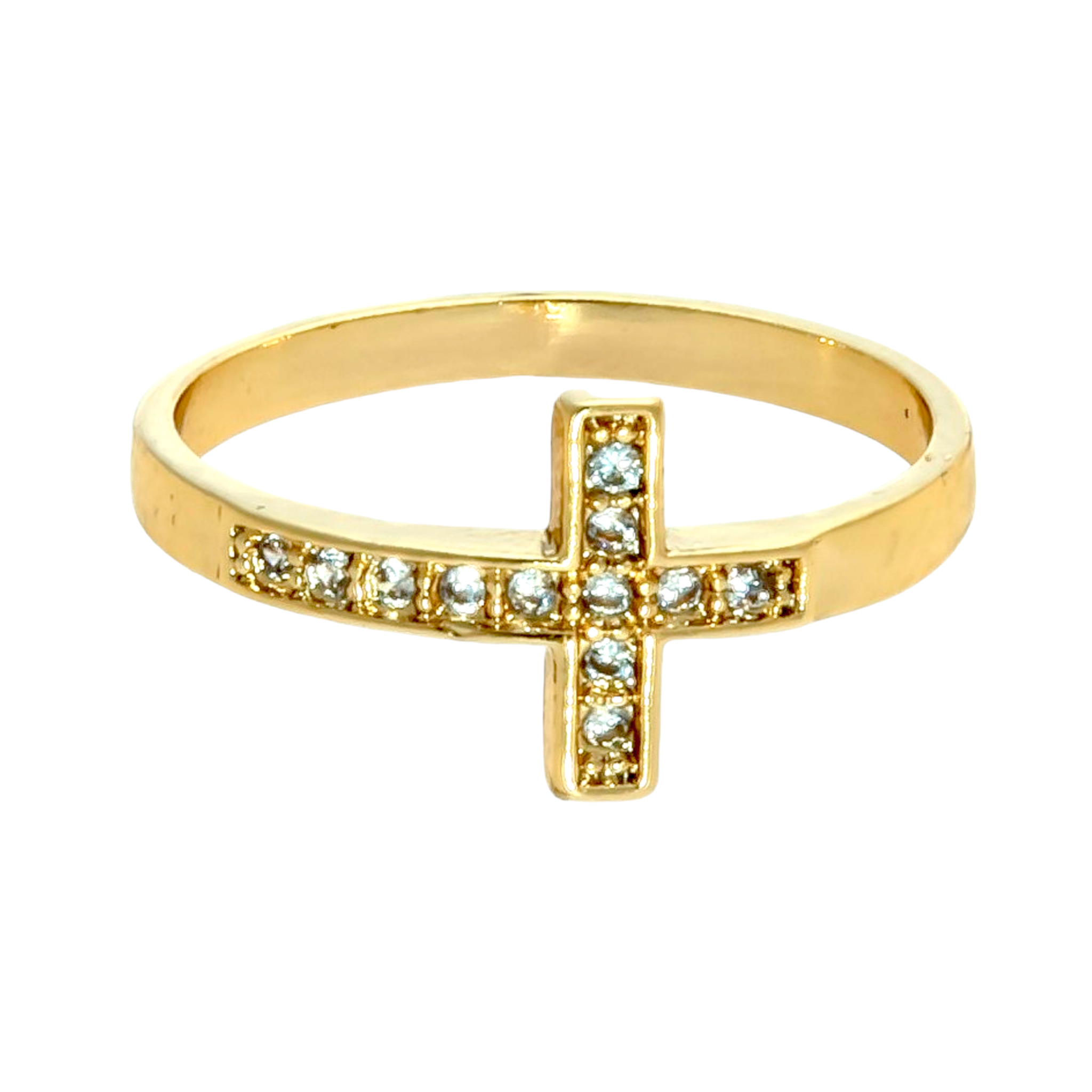 Anillo Cruz Calada Circón Oro