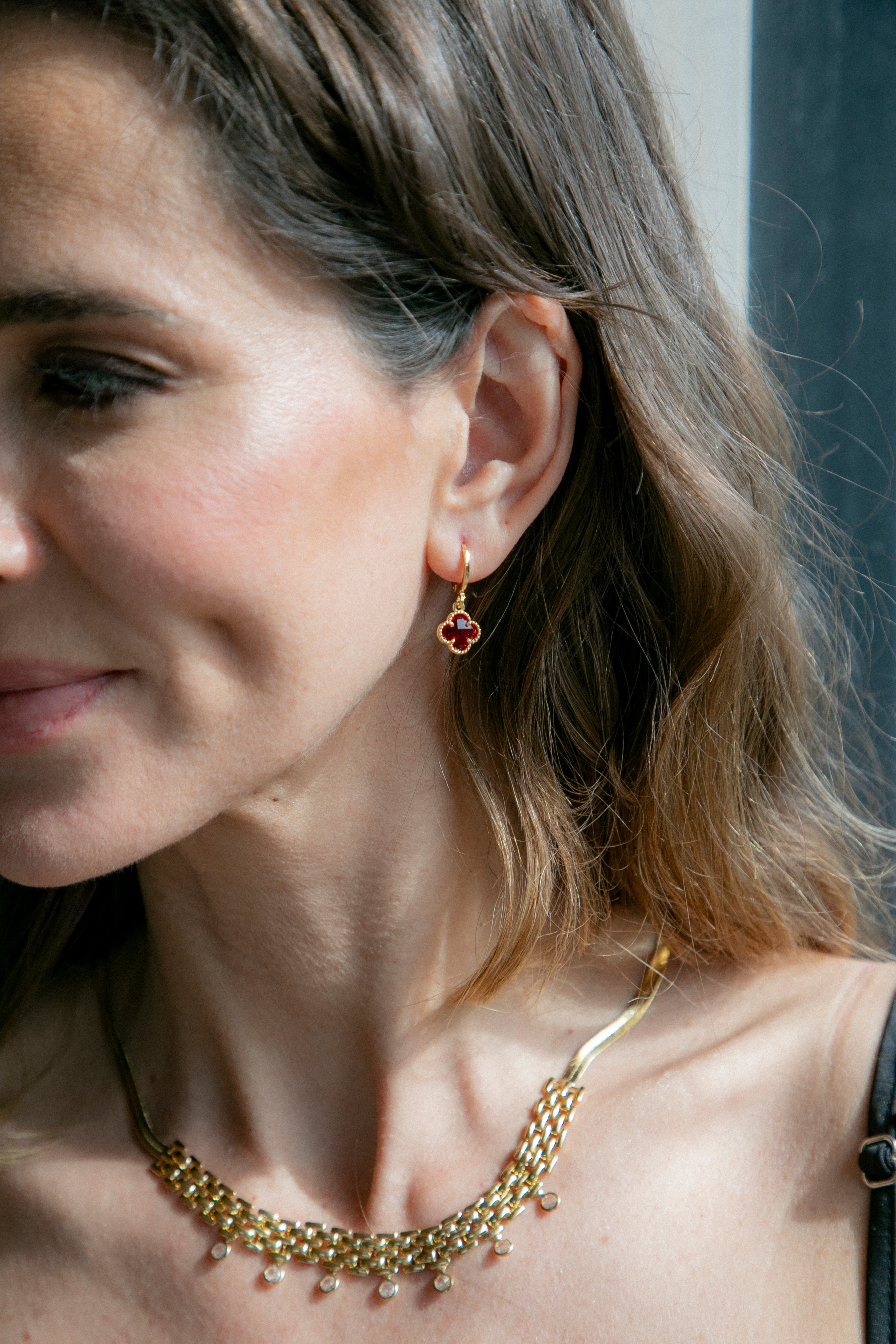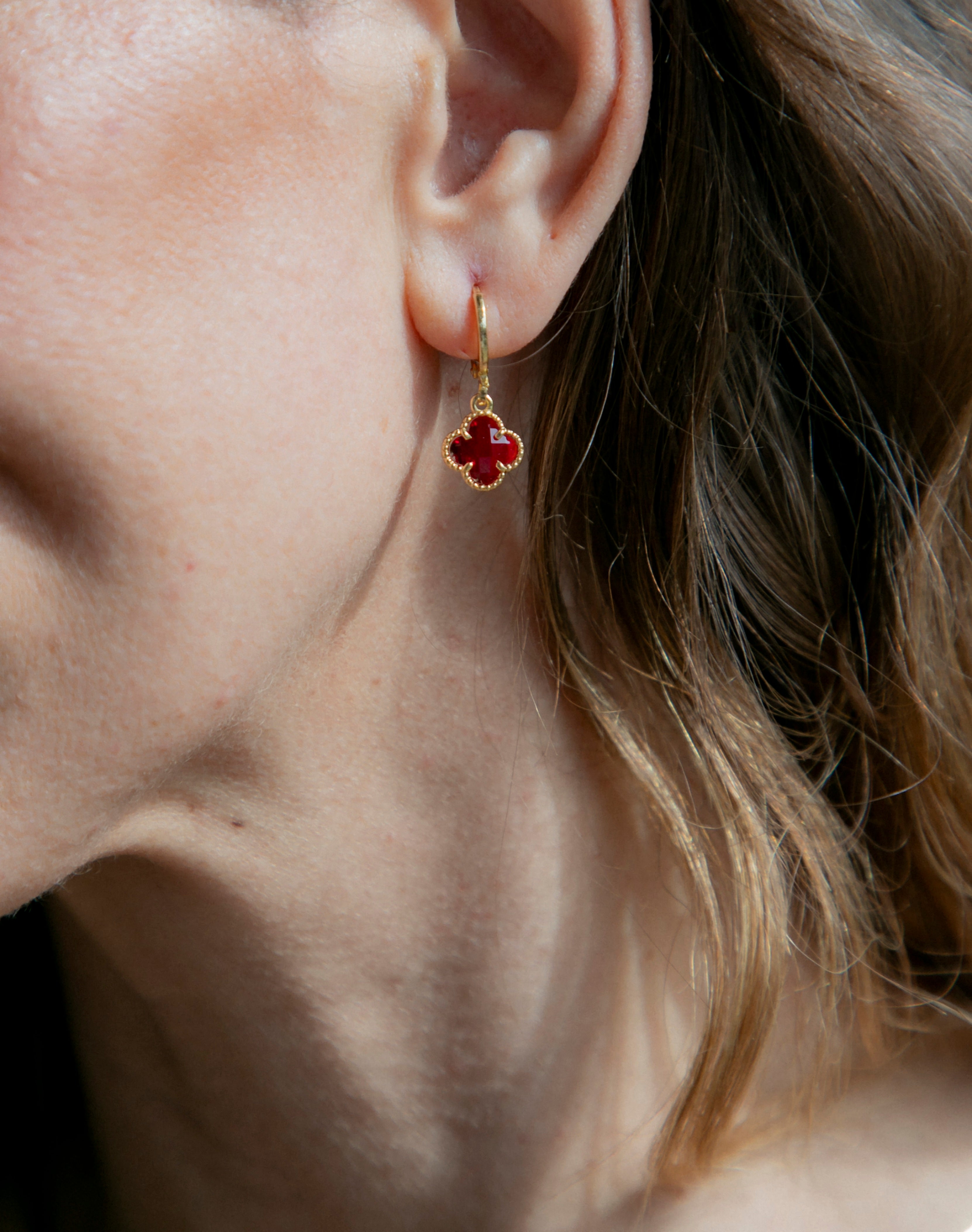 Aros Trébol Rubí Oro