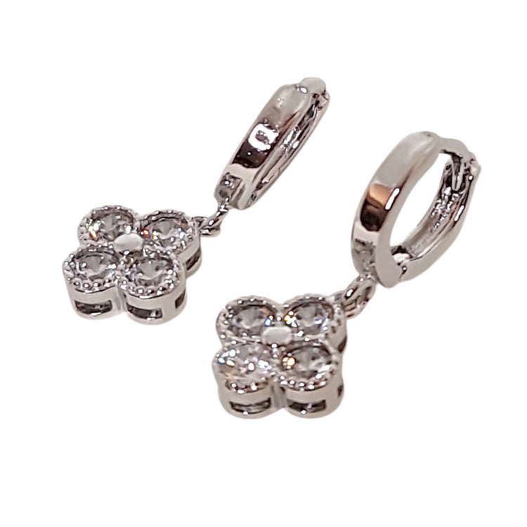 Los Aros Trébol Circones Platino son una pieza elegante y sofisticada bañada en platino (rodio) con circones brillantes. Perfectos para la mujer que busca unos aros con diseño de trébol ideales para novias y eventos especiales.