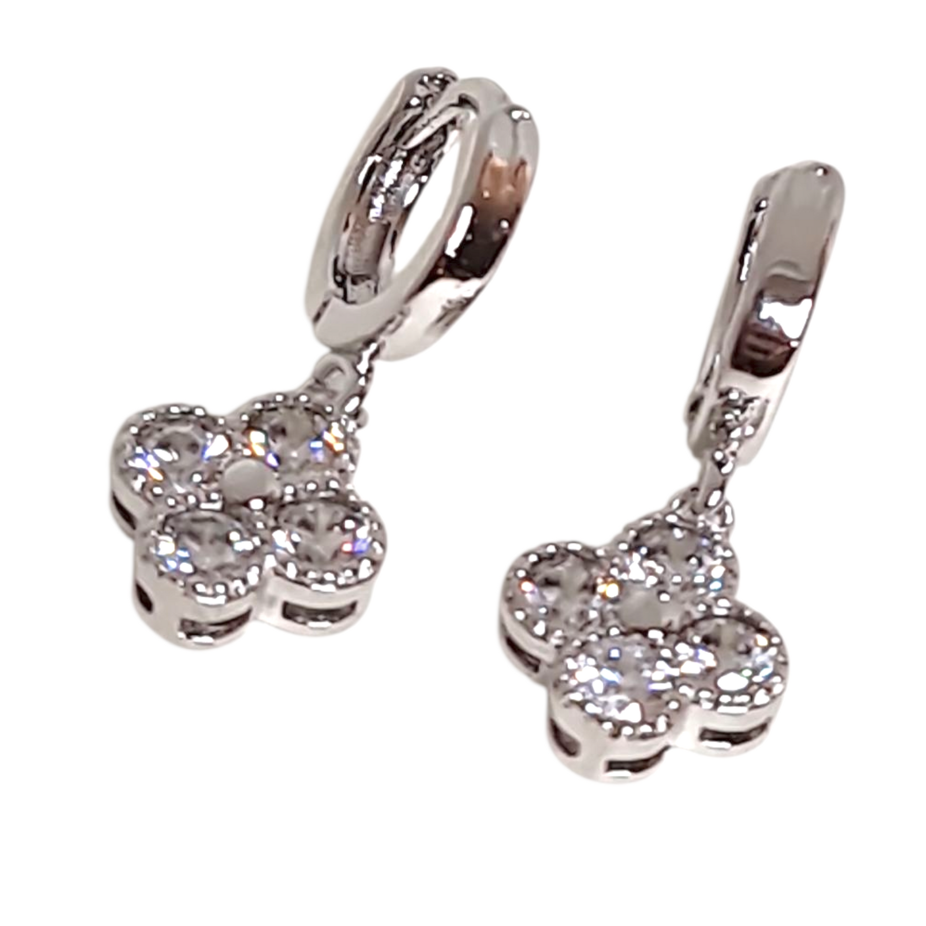 Estos aros son perfectos para la mujer que busca un accesorio elegante y simbólico que complemente su look en ocasiones especiales. El diseño de trébol representa la buena suerte, haciéndolos ideales para novias, matrimonios y eventos importantes. El baño de platino con circones les da un brillo especial que destaca con elegancia.