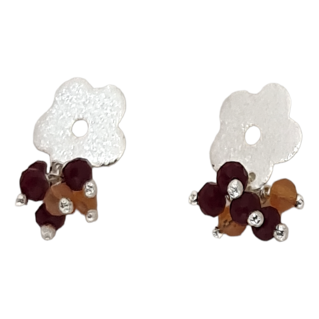 Aros Flor Rubí Plata