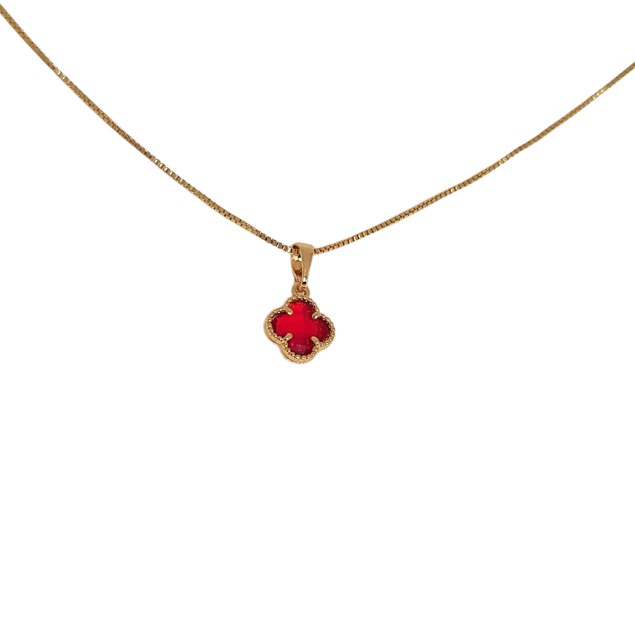 Collar Trébol Rubí Oro