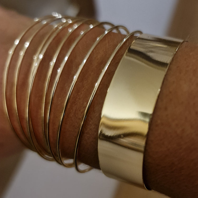 La Esclava Jacinta Oro es una pieza magnífica que destaca por su grosor imponente pero liviano. Perfecta para la mujer que busca una esclava con presencia sin sacrificar comodidad.