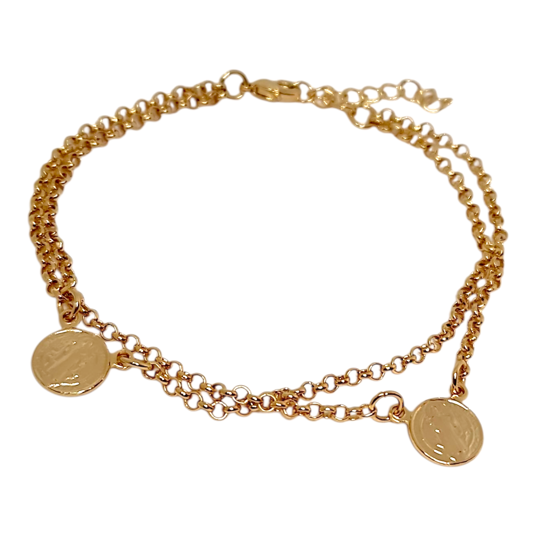 Pulsera Virgen de los Rayos 2 medallas Oro